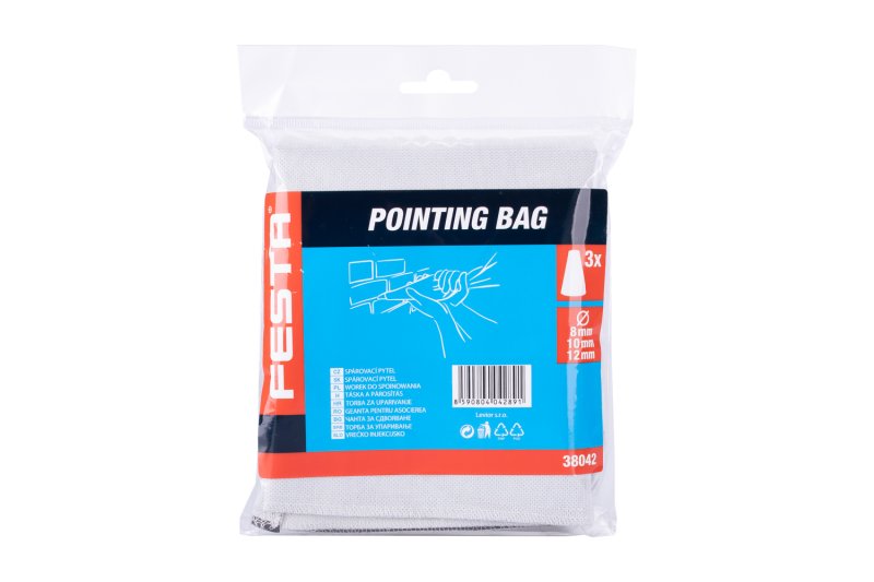 Verbindungsbeutel, spezielle Konstruktion, besonders widerstandsfähiges und abwaschbares Material, hochwertige Verbindung – Nahtschweißung, die eine Form bildet, die an Dekorfolie für Kuchen erinnert, Verwendung: Es ist ein unschätzbarer Helfer beim Verbinden von Verblendmauerwerk, Ziegeln, Kunst- und Naturstein Durch das Verblocken und Füllen aller Fugen mit einer Breite von mehr als 10 mm liegt der Vorteil insbesondere im Auftragen der Fugenmasse an der gewünschten Stelle bei minimaler Verschmutzung der Umgebung. Mit drei austauschbaren Enden Durchmesser 8,10,12 mm.