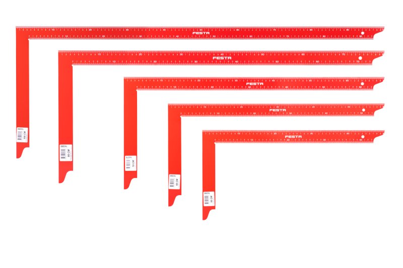 Carpenter's square made of one piece of hardened spring steel, scale in mm - accuracy 0.5mm/m.