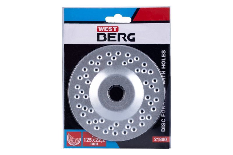 The wood disc with holes is intended for processing soft and hard wood, such as grinding off excess material, grinding to the desired shape or rounding the edges. Internal diameter 22.2 mm for mounting in an angle grinder.
