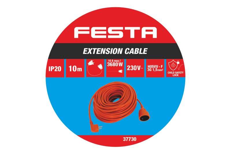 Extension cable FESTA 3x105mm 10m max. 3680W IP20