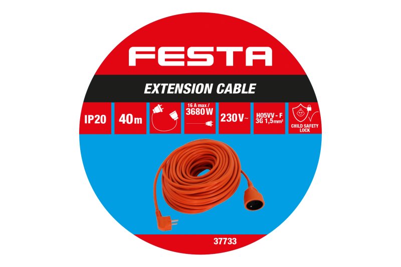 Extension cable FESTA 3x1.5mm 40m max.3680W IP20