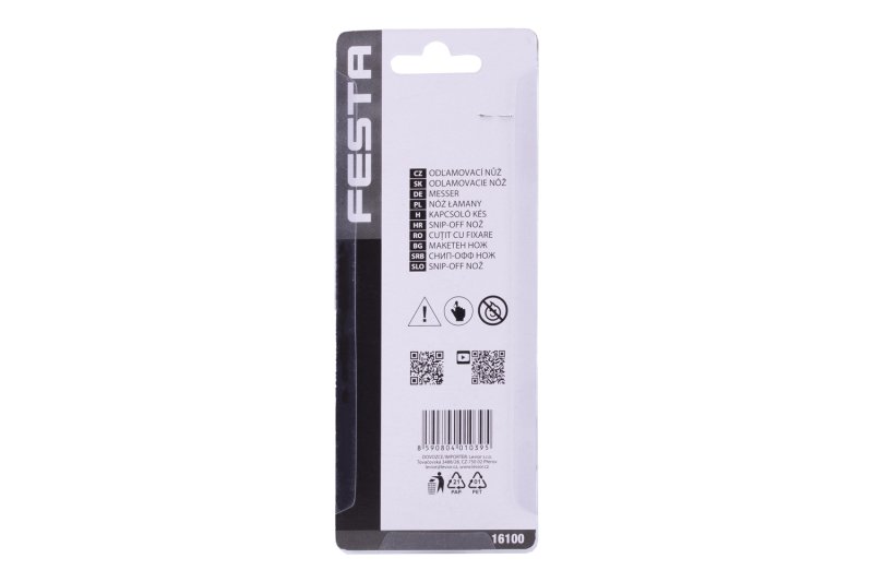 FESTA vágókés 18mm, minőségi anyagok, fém rúd, automata reteszelés biztosítékkal, akár 3 db tartalék penge helyezhető a késbe, buborékfólia.