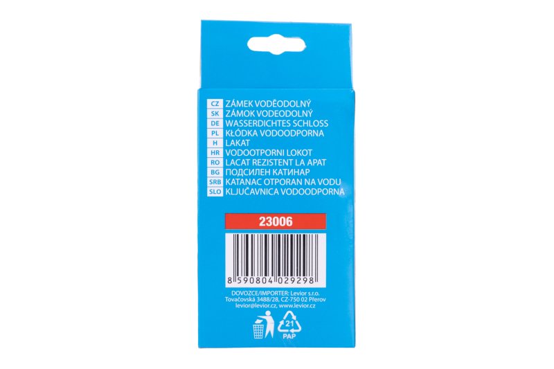 60 mm-es acél test műanyaggal bevonva a maximális víz- és nedvességállóság érdekében. Edzett acél ív műanyag bevonattal a jobb vágásállóság érdekében Súly: 430g 2 acélkulcs.